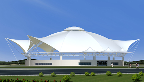 膜結構建筑中使用的膜材料很輕,每平方米的重量只有1公斤左右,因此膜結構可以從根本上克服傳統(tǒng)結構在大跨度(無支撐)建筑上實施所遇到的困難,并能創(chuàng)造開闊的無遮擋可視空間,有效增加空間使用面積。